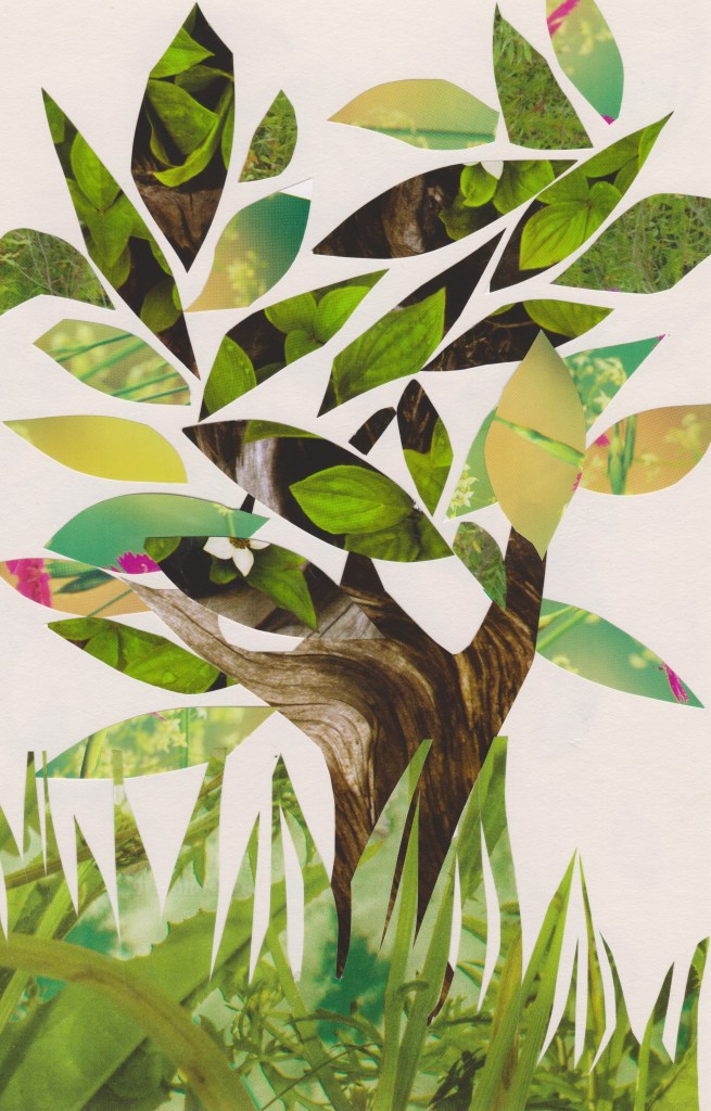 To capture in art all the different communities the students are a part of, each class pasted fabric onto foamboard “humans.” The background fabric represents their classroom community, red triangles represent their school community, and all the other fabrics represent the many other communities that are a part of students’ lives.